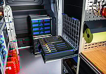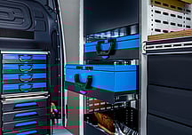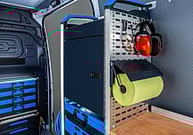 The Globelyst4 organisation system permits high levels of individualisation and direct retrievability of transported materials. Organisation aids in the van racking ensure that, whatever the sector, long, bulky and small materials all have their allocated space.